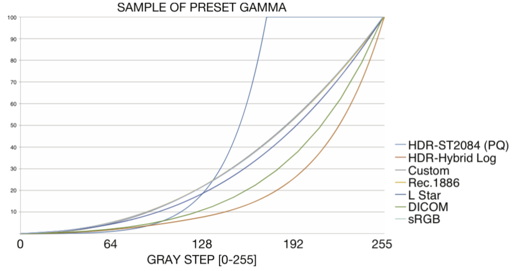 预设10组(伽玛1.8-2.6,DICOM,CT,MRI bingli(HLG)等)