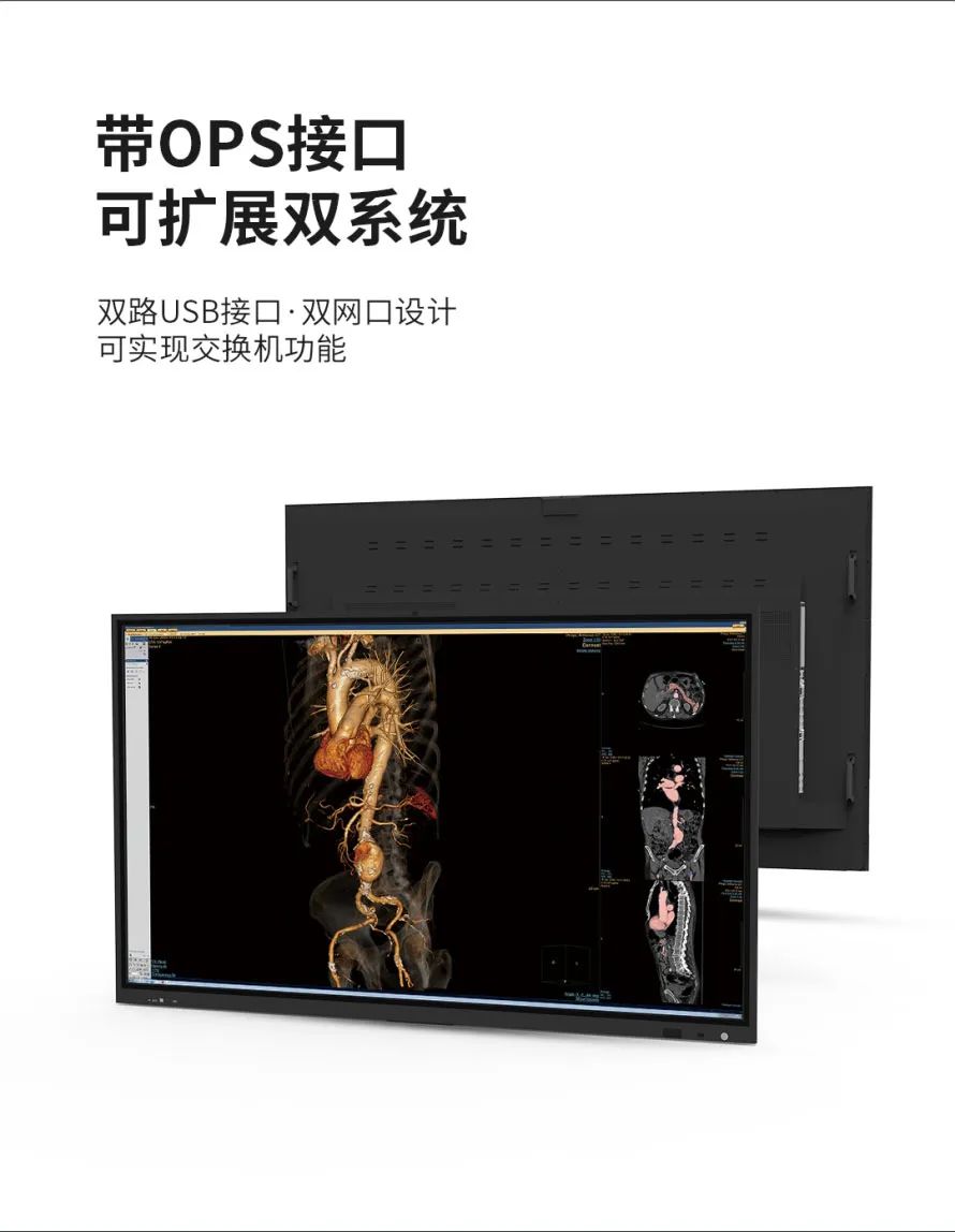 仙艺全新一代大屏幕智能并轨影像会诊中心显示器,支持双系统切换,即内置安卓系统,随时可以切换至Windows系统,一个屏幕既能实现会议电子白板的功能,又可作为DICOM标准显示器实现会诊、读片、教学、远程医疗等应用。 |